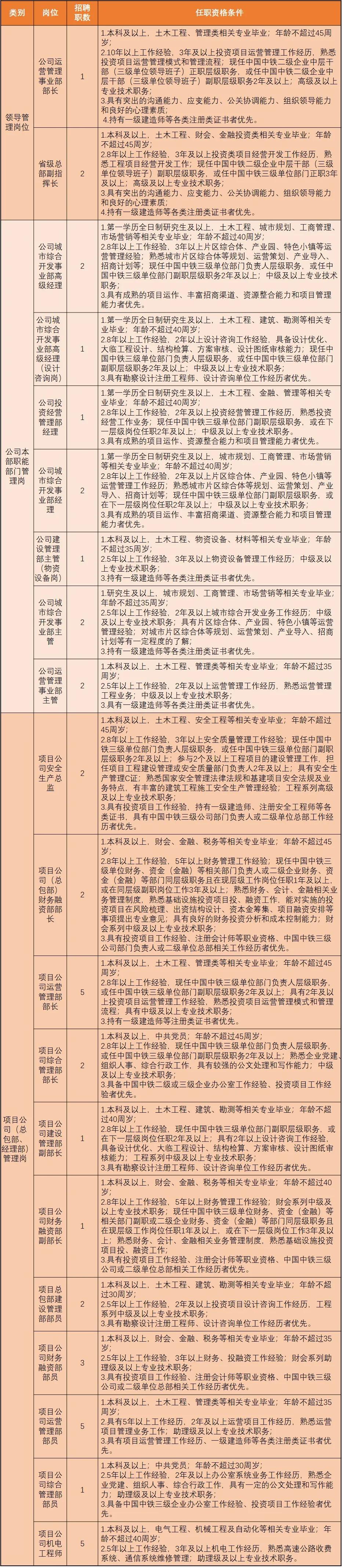 詳見《中鐵發展投資有限公司公開招聘崗位任職資格條件》