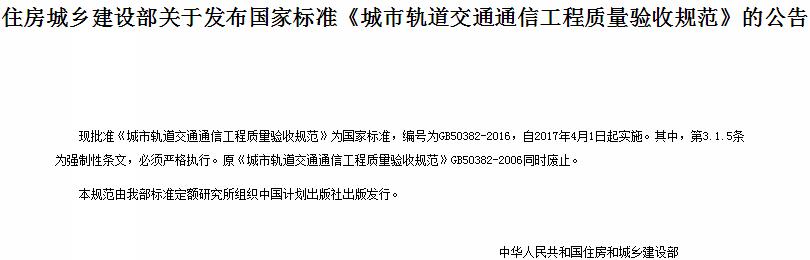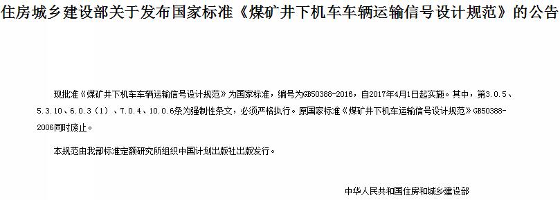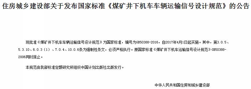 今日,建設部接連發(fā)布了8篇國家強制性標準公告,其他包括:《電氣裝置安裝工程 接地裝置施工及驗收規(guī)范》、《煤礦立井井筒及硐室設計規(guī)范》、《煉油裝置火焰加熱爐工程技術規(guī)范》、《煤礦井下機車車輛運輸信號設計規(guī)范》、《城市軌道交通通信工程質(zhì)量驗收規(guī)范》、《燃氣冷熱電聯(lián)供工程技術規(guī)范》、《壓縮天然氣供應站設計規(guī)范》和《建筑工程施工質(zhì)量評價標準》,2017年4月1日起正式實施。
