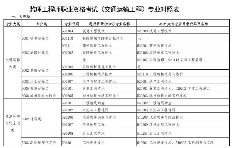 2020年監(jiān)理工程師考試三大報(bào)考專業(yè)(土木建筑工程、交通運(yùn)輸工程、水利工程)對(duì)照表公布!