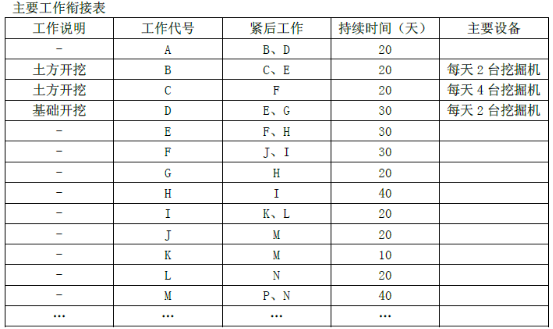 (2)C工作推遲10天開始,不會(huì)影響總工期,第50天開始,第70天結(jié)束。(或C工作按最早開始時(shí)間安排進(jìn)度,前10天與D工作平行施工,每天用兩臺(tái)設(shè)備;后D工作結(jié)束,則C工作用4臺(tái)設(shè)備工作15天。)