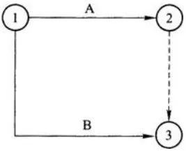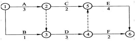 解析:雙代號網絡圖中每一項工作都必須用一條箭線和兩個代號表示,若A、B兩項工作的代號相同時,應使用虛工作加以區分。1-2代表A工作,1-3代表B工作,故選C。
