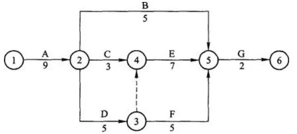 解析:此題考查了關鍵線路計算。該工程的關鍵線路為①→②→③→④→⑤→⑥,工期為3+3+4=10。故A正確。