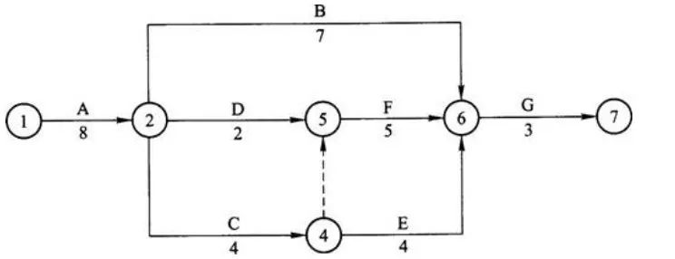解析:首先計(jì)算工作A的最遲完成時(shí)間=其緊后工作最遲開始時(shí)間的最小值=min(27,34)=27天;計(jì)算工作A的總時(shí)差=工作A的最遲完成時(shí)間-工作A的最早完成時(shí)間=27-(10+6)=11天;計(jì)算工作A的自由時(shí)差=min(工作A的緊后工作最早開始時(shí)間-工作A的最早完成時(shí)間)=min(10,15)=10天,故選D。