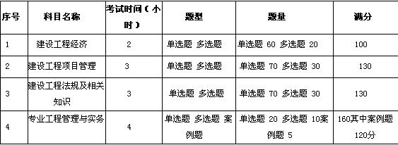 一級建造師執(zhí)業(yè)資格考試設(shè)《建設(shè)工程經(jīng)濟》、《建設(shè)工程項目管理》、《建設(shè)工程法規(guī)及相關(guān)知識》、《專業(yè)工程管理與實務(wù)》這4個科目。其中《專業(yè)工程管理與實務(wù)》科目設(shè)置10個專業(yè)類別:建筑工程、公路工程、鐵路工程、民航機場工程、港口與航道工程、水利水電工程、市政公用工程、通信與廣電工程、礦業(yè)工程、機電工程。