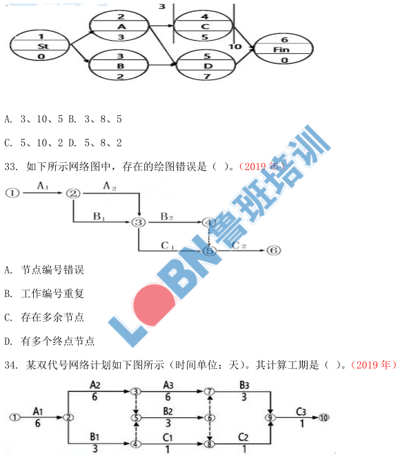 【解析】?jī)蓚€(gè)節(jié)點(diǎn)之間只能有一條箭線(xiàn),或兩個(gè)工作節(jié)點(diǎn)編號(hào)不能相同。