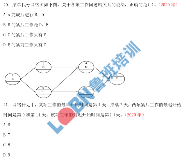 【解析】A 錯(cuò)誤,A 完成后 B、C。B 錯(cuò)誤,B 的緊后工作是 D。C 錯(cuò)誤,C 的緊后工作有 D、