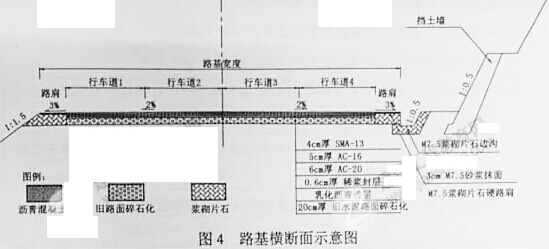 某雙向四車道一級公路運營10年后,水泥混凝土面板破損嚴重,擬進行改建,設計方案為:對舊水泥混凝土路面采用碎石化法處理,然后加鋪瀝青混凝土面層,同時在公路右側土質不穩定的挖方路段增設重力式擋土墻面及碎落臺(如圖4所示)。某施工單位通過投標承接了該工程。