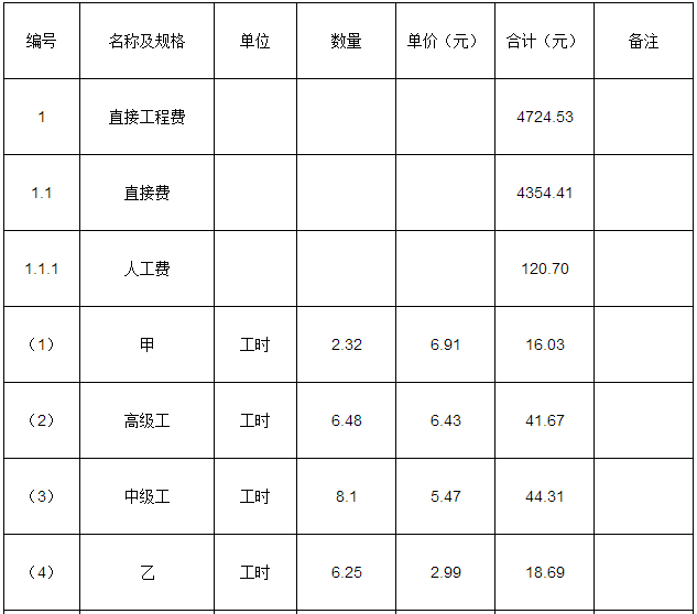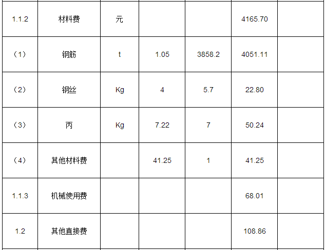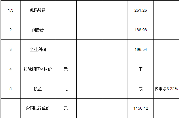 (2)3990.00,36.07。備注:直接工程費+間接費+利潤=5110.05,假定扣除鋼筋材料價為x,則有(5110.05-x)(1+3.22%)=1156.12,由此可得x=3990.00