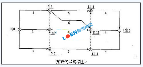 87.某分部工程雙代號網絡計劃如下圖所示(時間單位:d),圖中已標出每個節點的最早時間和最遲時間,該計劃表明( )。