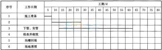 2.溝槽回填的工作總天數=1000m/200m/組×4d/組=20d。