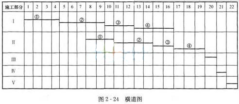 施工分為Ⅰ、Ⅱ、Ⅲ、Ⅳ、Ⅴ5個部分,Ⅰ、Ⅱ作業時間見下表,Ⅲ、Ⅳ、Ⅴ作業均為1周。