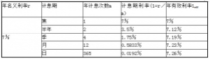 【解析】本題中年名義利率為7%,則年、半年、季、月、日的年有效利率見下表。
