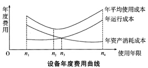 【解析】設(shè)備使用年限越長,所分攤的設(shè)備年資產(chǎn)消耗成本越少,但是隨著設(shè)備使用年限的增加,年資產(chǎn)消耗成本的降低,會被年度運行成本的增加或收益的下降所抵消。在整個變化過程中存在著某一年份,設(shè)備年平均使用成本最低,經(jīng)濟效益最好。如上圖所示,在n2年時,設(shè)備年平均使用成本達到最低值。稱設(shè)備從開始使用到其年平均使用成本最小(或年盈利最高)的使用年限n2為設(shè)備的經(jīng)濟壽命。所以,設(shè)備的經(jīng)濟壽命就是從經(jīng)濟觀點(即成本觀點或收益觀點)確定的設(shè)備更新的最佳時刻。
