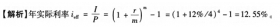 8.【2014年真題】名義利率12%,每季復(fù)利計息一次,則年實際利率為( )。