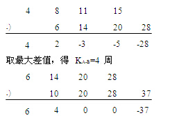基礎工程 A 的流水節拍累加值:4 8 11 15