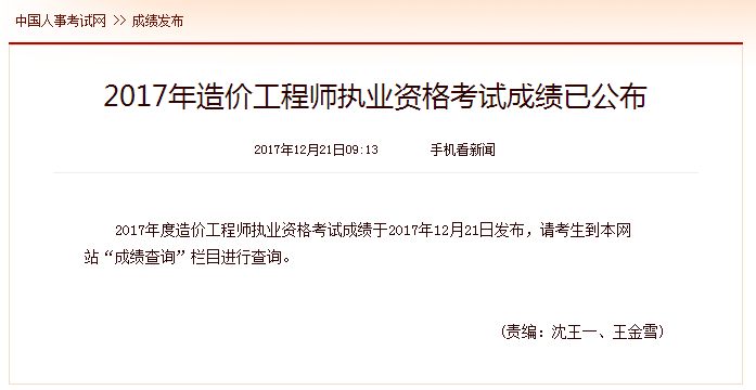2017年造價工程師考試已于10月21-22日完滿結束,已于12月21日開通查詢入口,趕緊去查一下自己的成績吧!