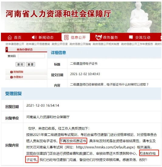 再加上近期多地二建都在領證中,著急的考生便去官網進行咨詢,并得到了回復。