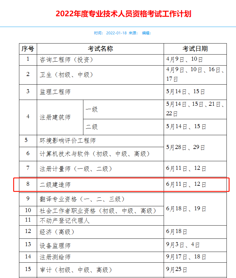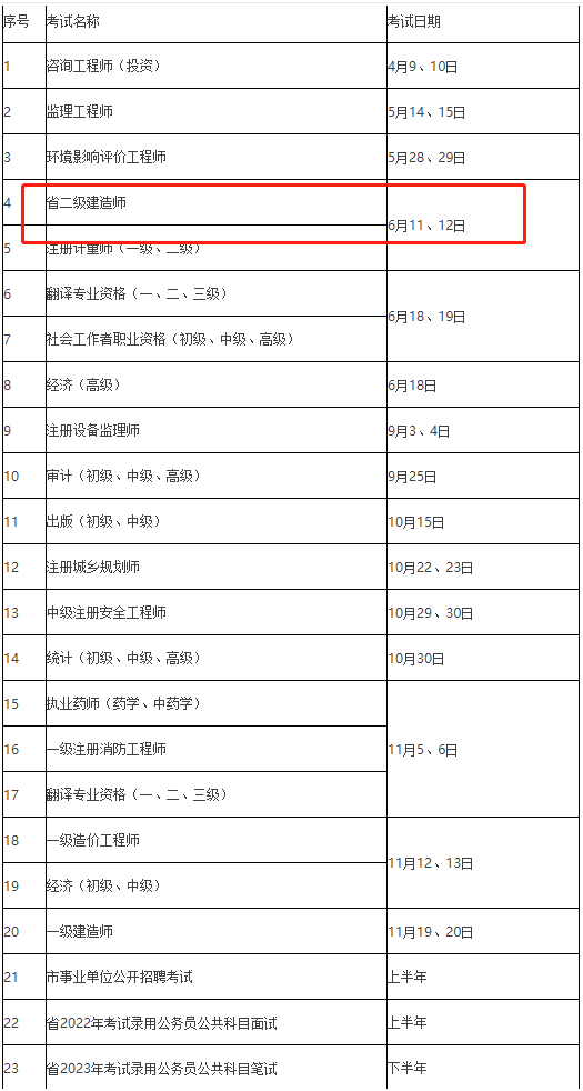 兩地2022年二級建造師考試時間公布