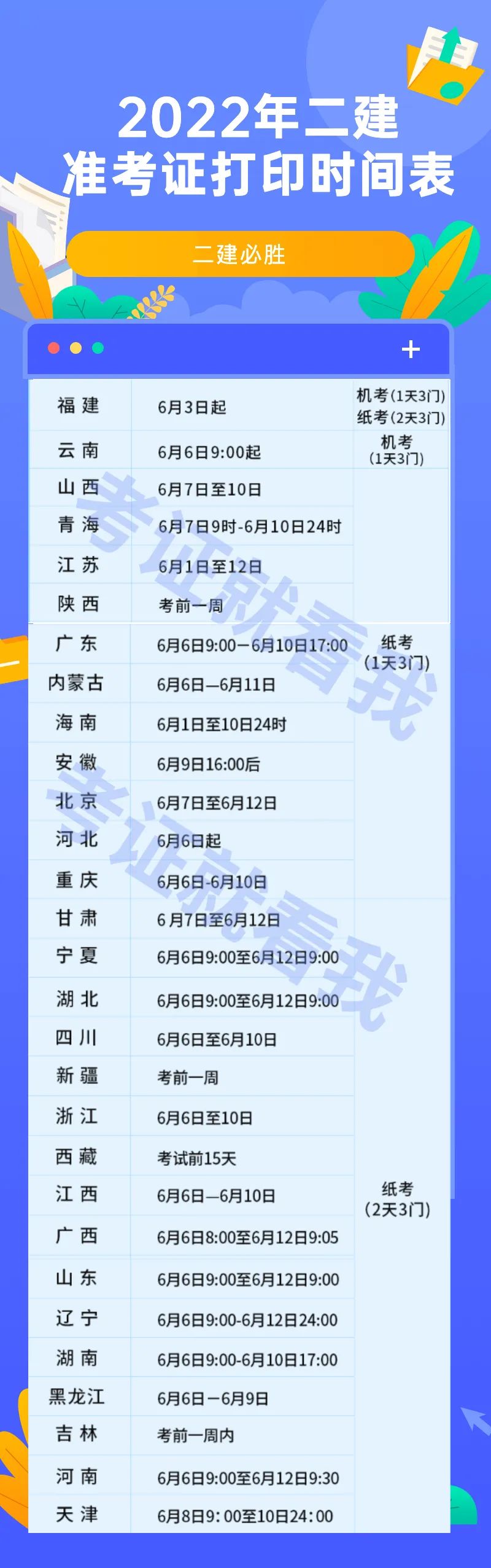 2022年二建準考證打印時間匯總