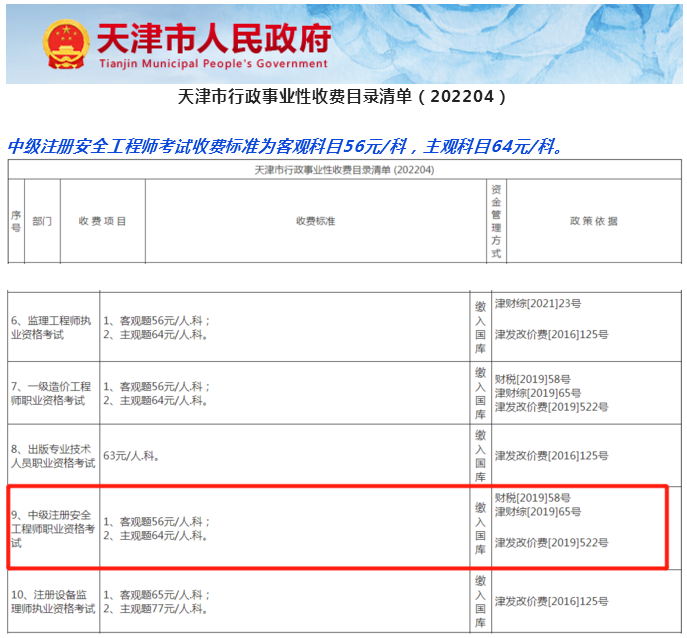 繼山西、海南、重慶三地后,近日,天津、山東羅莊兩地2022年中級安全工程師等考試收費清單也已發布!