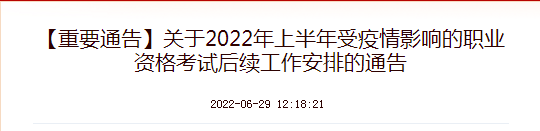 【重要通告】關于2022年上半年受疫情影響的職業資格考試后續工作安排的通告