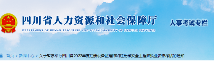 關(guān)于暫停舉行四川省2022年度注冊設(shè)備監(jiān)理師和注冊核安全工程師執(zhí)業(yè)資格考試的通知