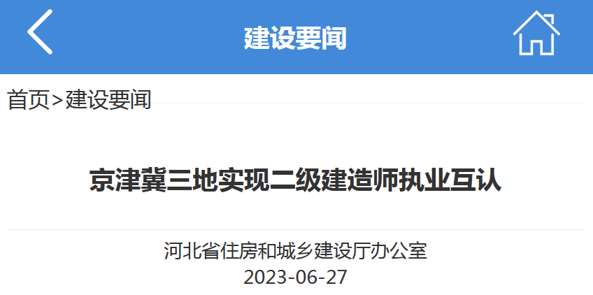 河北住建廳發布通知:自6月13日起,注冊在北京市、天津市、河北省建筑業企業中的二級建造師,可隨注冊企業在京津冀區域內承攬工程項目。一起來看看公告詳情吧~