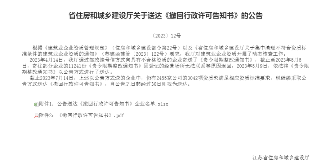 近日,江蘇省住建廳對建筑業企業資質開展的動態核查工作:
