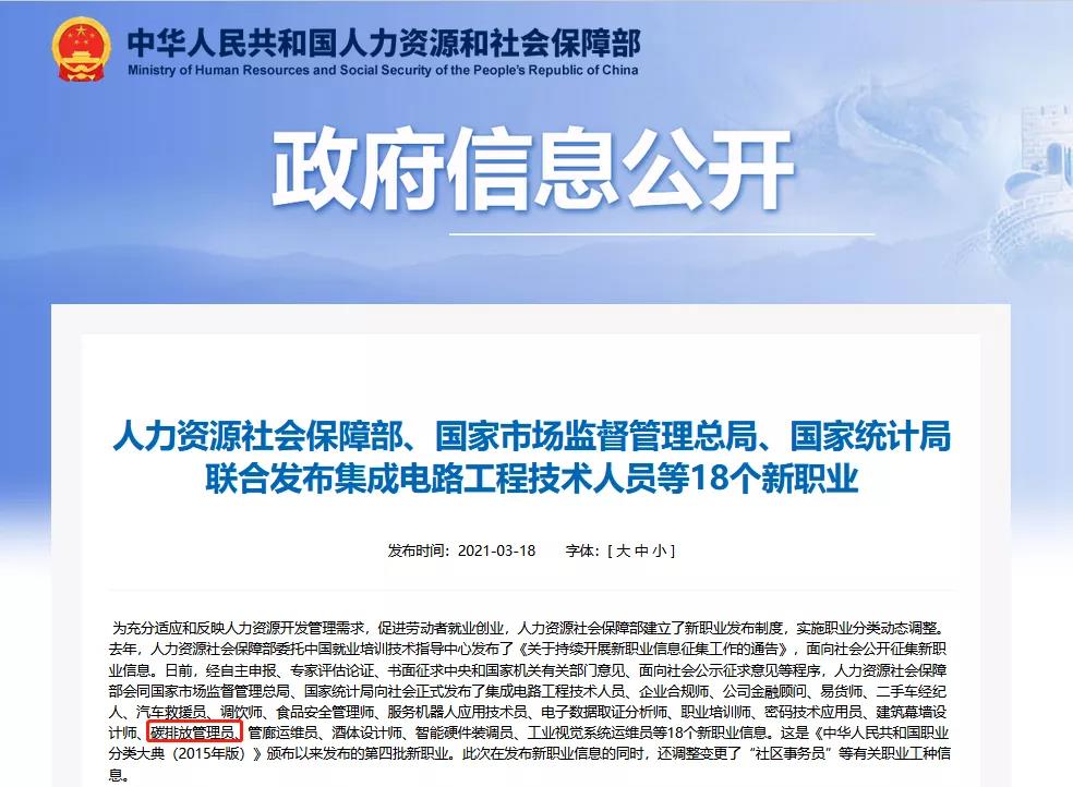 2020年9月22日,中國(guó)政府在第七十五屆聯(lián)合國(guó)大會(huì)上提出:中國(guó)將提高國(guó)家自主貢獻(xiàn)力度,采取更加有力的政策和措施。二氧化碳排放力爭(zhēng)于2030年前達(dá)到峰值,努力爭(zhēng)取2060年前實(shí)現(xiàn)碳中和,而從事碳中和相關(guān)工作的專業(yè)人才即被稱為:碳排放管理師。2021年3月18日,人社部、國(guó)家市場(chǎng)監(jiān)管總局、國(guó)家統(tǒng)計(jì)局發(fā)布了18項(xiàng)新職業(yè)"碳排放管理員"被正式列入國(guó)家職業(yè)序列,那么碳排放管理師究竟是什么?