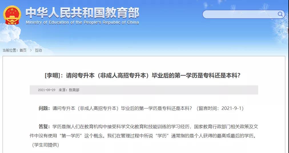 早在2014年8月,教育部就回答過類似的問題并提到:如果一定要強調“第一學歷”,小學、中學也是學歷。
