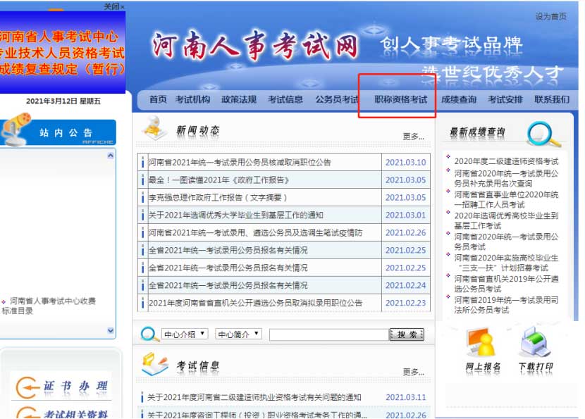 一、登錄河南人事考試網(wǎng) 點擊職稱資格考試 點擊進(jìn)入http://www.hnrsks.com/Default.aspx