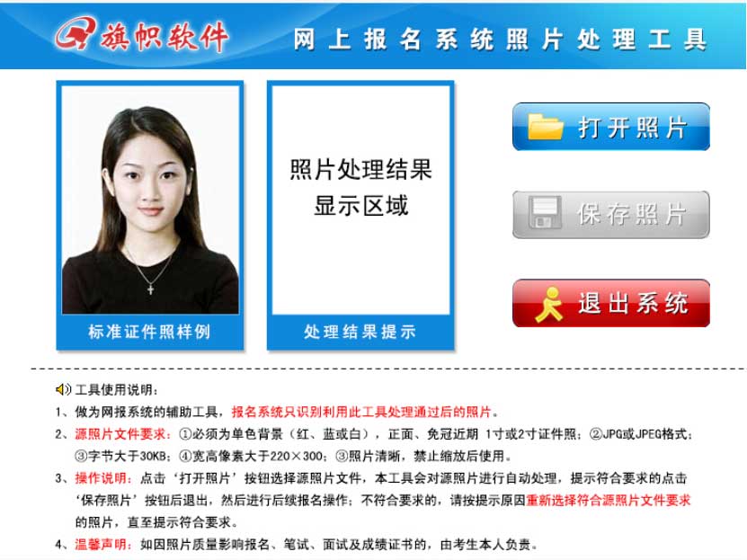 照片要通過照片處理器處理過才行,處理器程序可以在上傳頁面下側(cè)下載,照片要求如下: