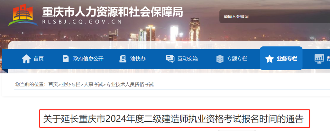 關(guān)于延長重慶市2024年度二級建造師執(zhí)業(yè)資格考試報名時間的通告