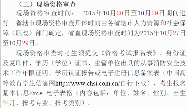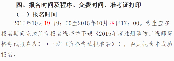 2015年河南一級消防工程師考試報名安排