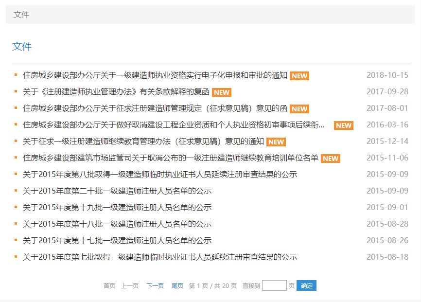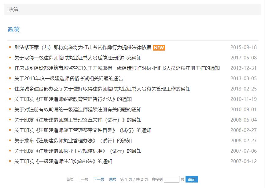 由上圖我們可以看到,網(wǎng)站內(nèi)容主要包括四個(gè)板塊:政策文件、公告通知、查詢服務(wù)、注冊(cè)建造師管理信息系統(tǒng)。
