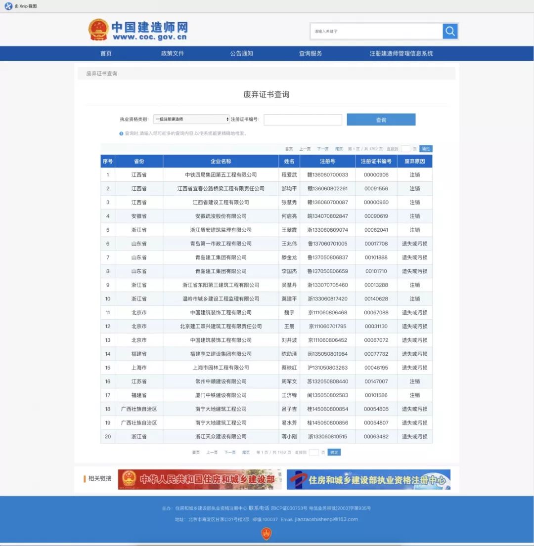 廢棄證書(shū)查詢:這個(gè)欄目里放的是一些處罰后的證書(shū)信息。