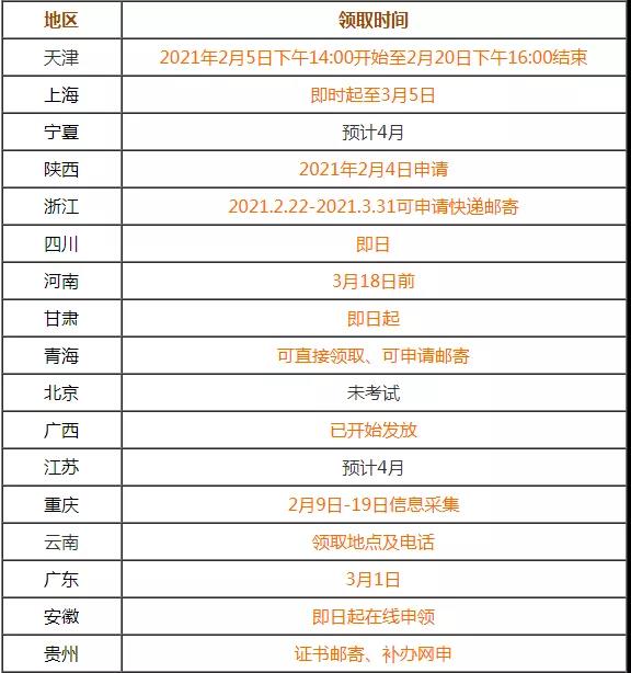 各地一級造價工程師證書領取匯總!