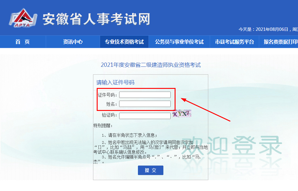 2、二級(jí)建造師查詢方式:輸入身份證號(hào)+驗(yàn)證碼即可