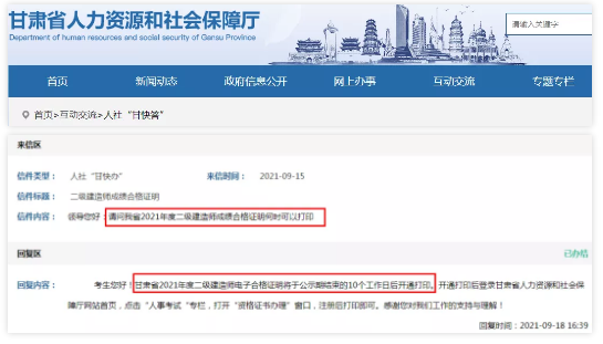 甘肅省2021年度二級建造師電子合格證明將于公示期結(jié)束的10個工作日后開通打印。開通打印后登錄甘肅省人力資源和社會保障廳網(wǎng)站首頁,點擊“人事考試“專欄,打開“資格證書辦理”窗口,注冊后打印即可。感謝您對我們工作的支持與理解!