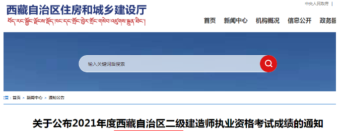 2021年度西藏二級建造師考試成績正式公布,原文公告: