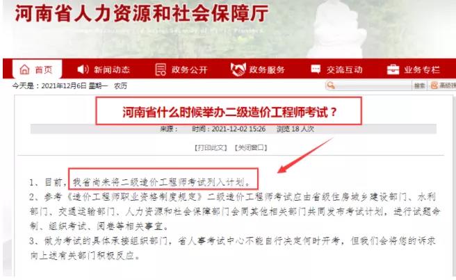 河南人社廳回復(fù):河南省什么時候舉辦二級造價