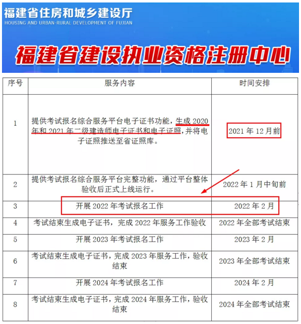 ⑤福建:2022年福建二級建造師考試將全面啟用無紙化機考,近3年機考時間發布,2月份報名,5月份考試。