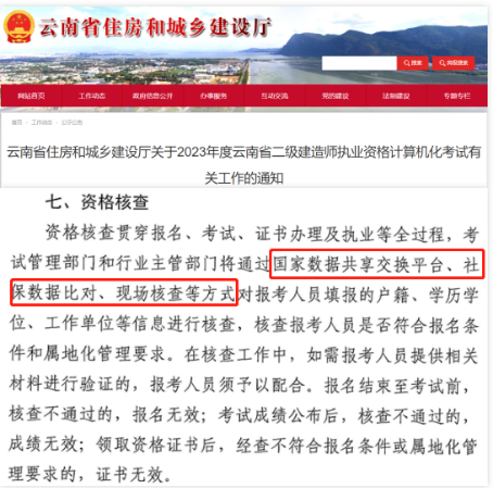 考試結束后,省、市人事考試主管部門、考試機構將對全部成績合格人員進行學歷、專業工作年限等信息進行考后審核,并將通過省一體化平臺核查考生歷年來全部社保信息進行比對。