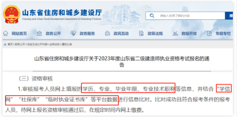 審核報考人員網上填報的學歷、專業、畢業年限、專業技術職稱等信息,并結合“學信網”“社保庫”“臨時執業證書庫”等平臺數據進行信息比對。