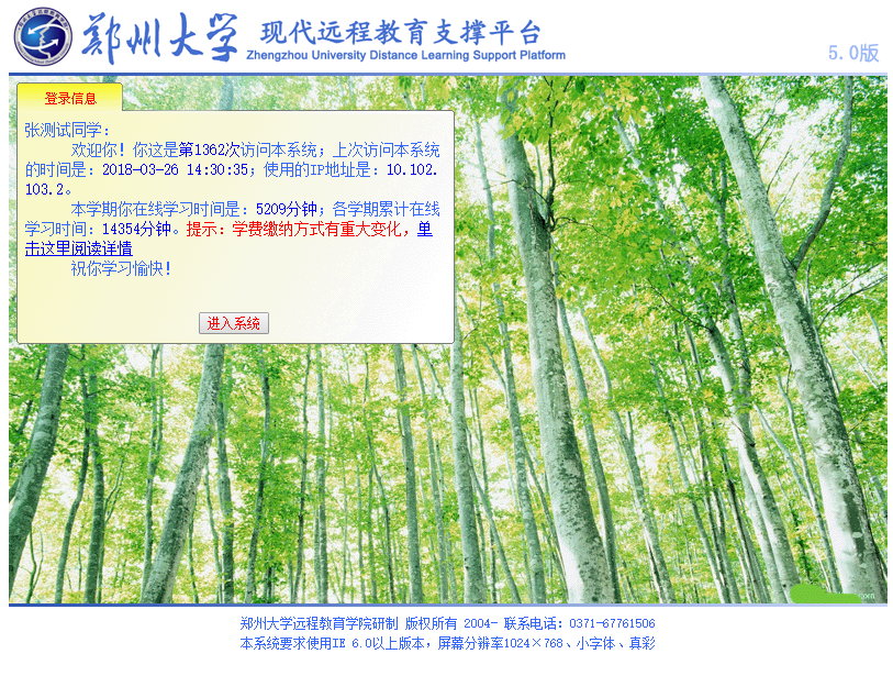 網上考試平臺學生登陸需要從鄭州大學現代遠程教育支撐平臺中跳轉。在瀏覽器地址欄中輸入http://dls.zzu.edu.cn/,進入鄭州大學現代遠程教育支撐平臺,在頁面的登錄框點擊“登陸”按鈕,鄭州大學現代遠程教育支撐平臺首頁登錄如下圖所示: