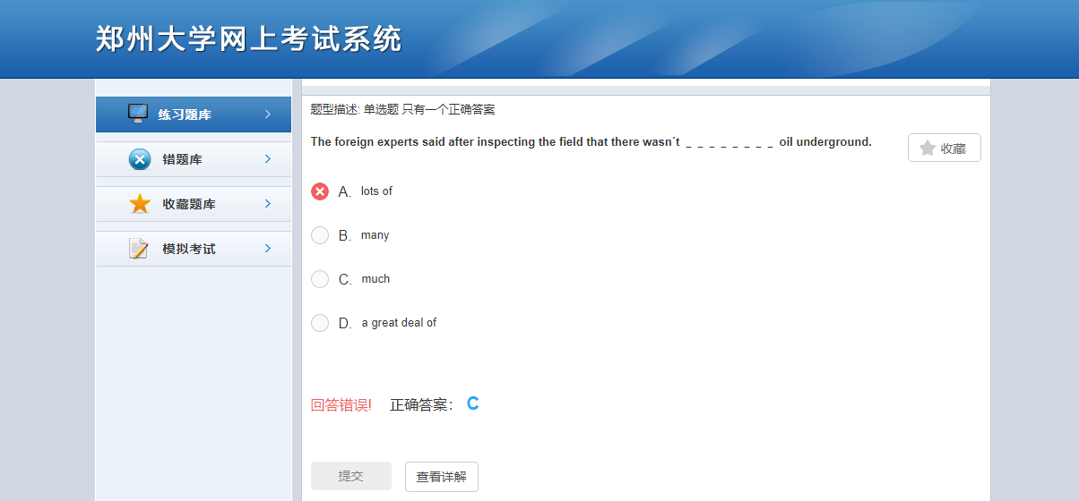 答完當前試題后點擊【提交】,客觀題系統會自動判斷答案,并給出正確選項。主觀題答題后可查看正確答案。