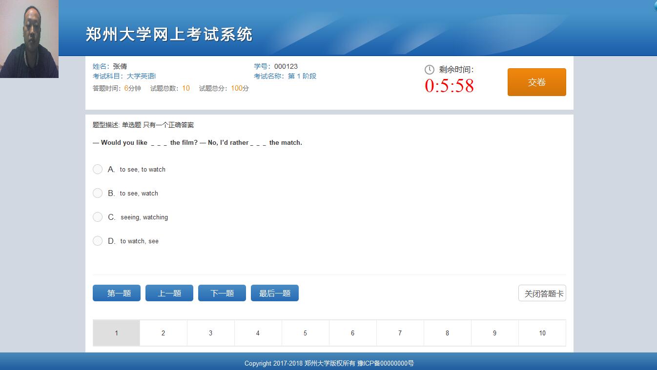 1、必須學生本人參加考試,考試環境必須相對封閉,考試過程中盡量避免攝像頭中出現其他人員。