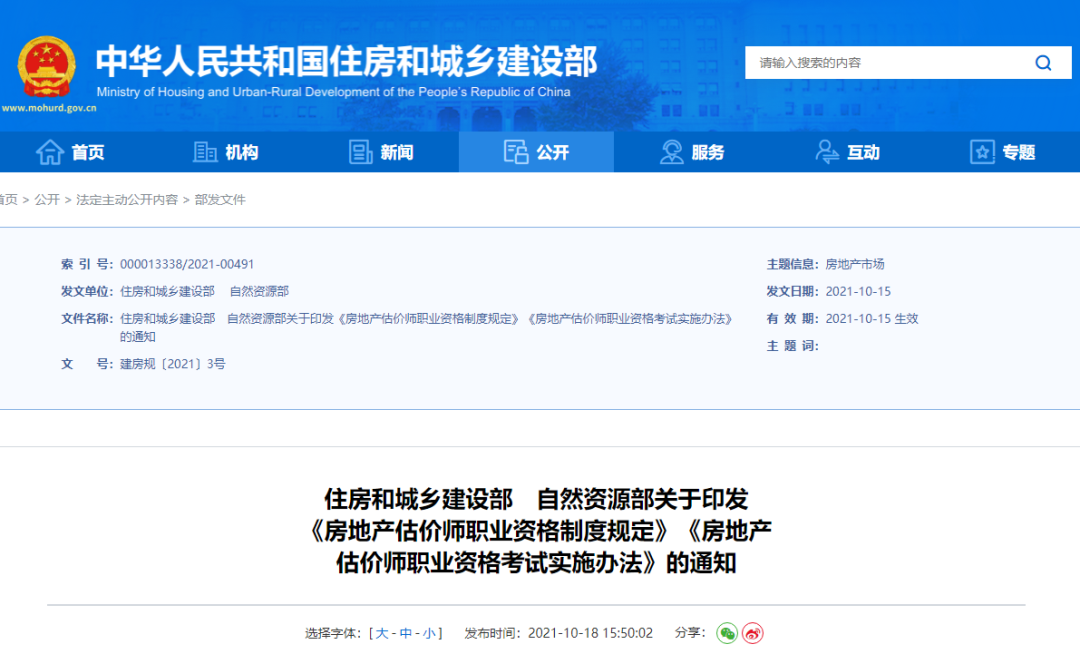今日,住建部正式發布關于印發《房地產估價師職業資格制度規定》《房地產估價師職業資格考試實施辦法》的通知,本規定自印發之日起施行。