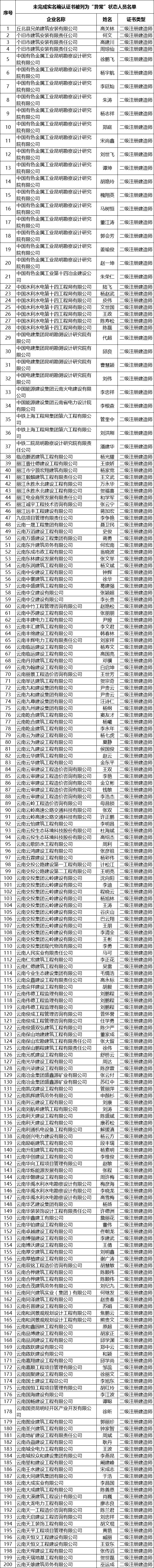 此前,云南省住建廳發布了關于部分建筑從業人員“異常”證書信息的公示。