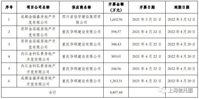 金科方面透露,自2021年4月至回函日,相關供應商與聯融保理開展該類型保理業務金額累計為1.81億元。而公司方面目前未按期向聯融保理兌付的商業承兌匯票余額為4407萬元。